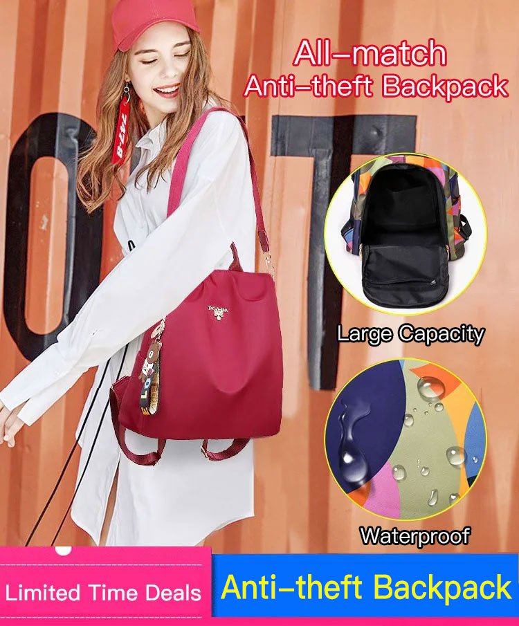 Lightweight and fashionable, safe and anti-theft contrast color backpack, imported nylon fabric, 20L large capacity, waterproof, anti-theft back opening, safe and secure travel